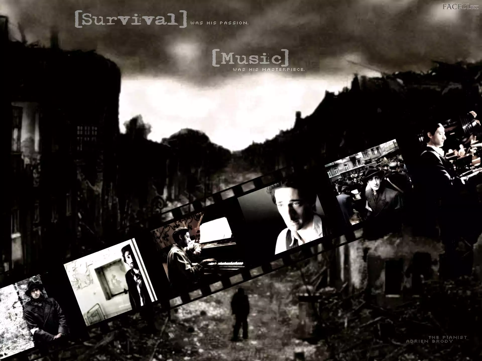 Adrien Brody, zniszczone, klisza, miasto